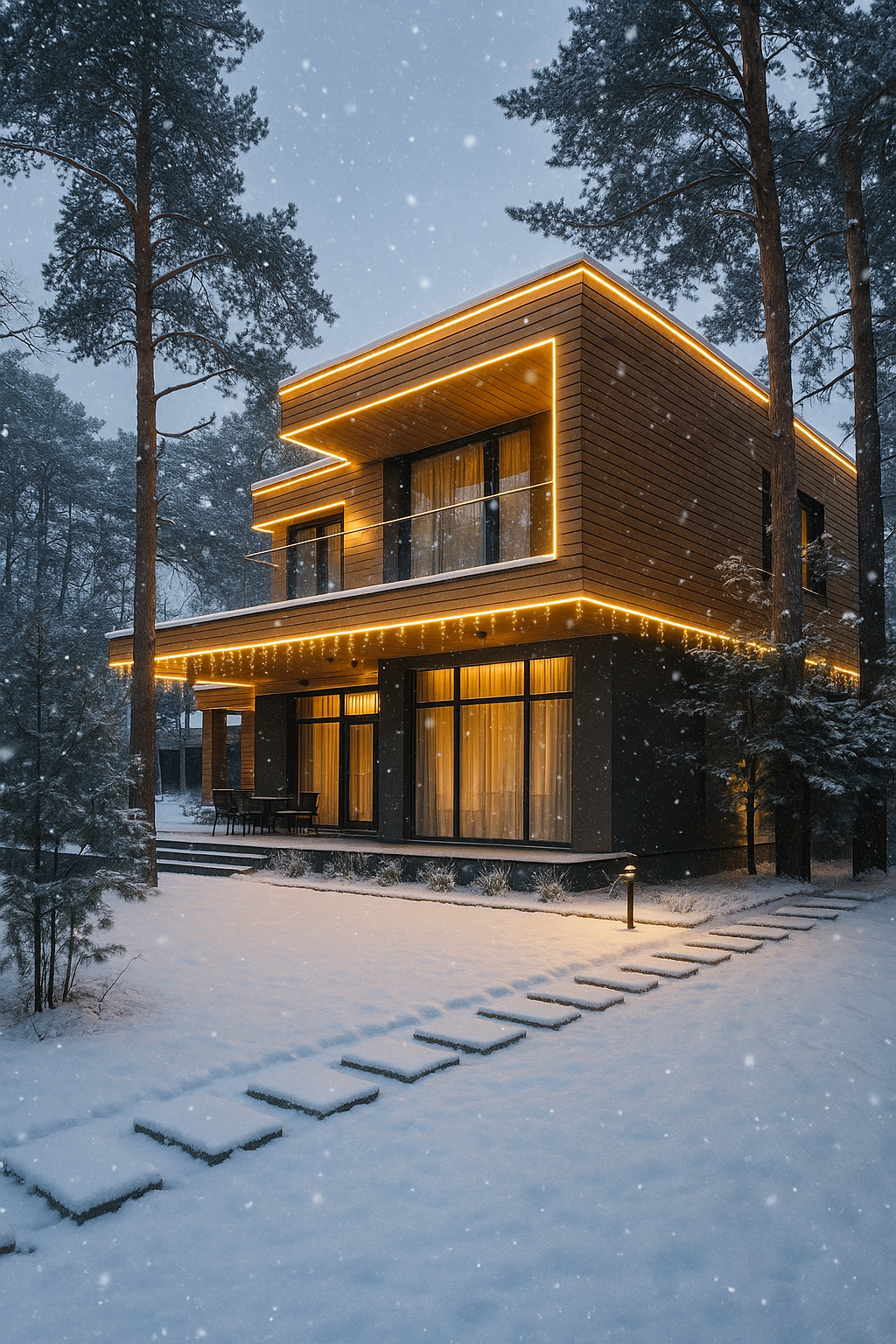 - Подсветка крыши, окон, балконов и террас